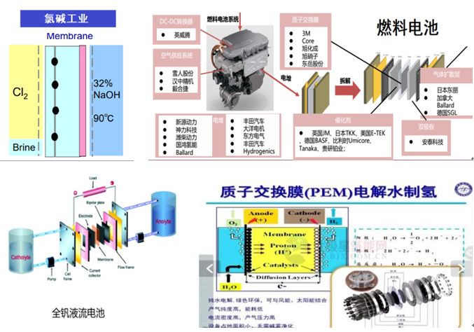 全氟磺酸树脂分散液是将全氟磺酸树脂分散到特定溶剂中形成的液体形态,其特点在于能以溶液形式通过涂布等工艺形成具有纳米级离子通道的连续薄膜,从而提供卓越的质子选择性传导能力与化学稳定性,主要用于燃料电池质子交换膜、电解质薄膜、催化剂涂层及电化学传感器等,是生产是质子交换膜的核心材料之一。分散液的质量直接决定了最终质子交换膜的质子传导效率、气体阻隔性、机械强度和耐久性,进而影响着产品的功率密度、能效和使用寿命等关键性能。
